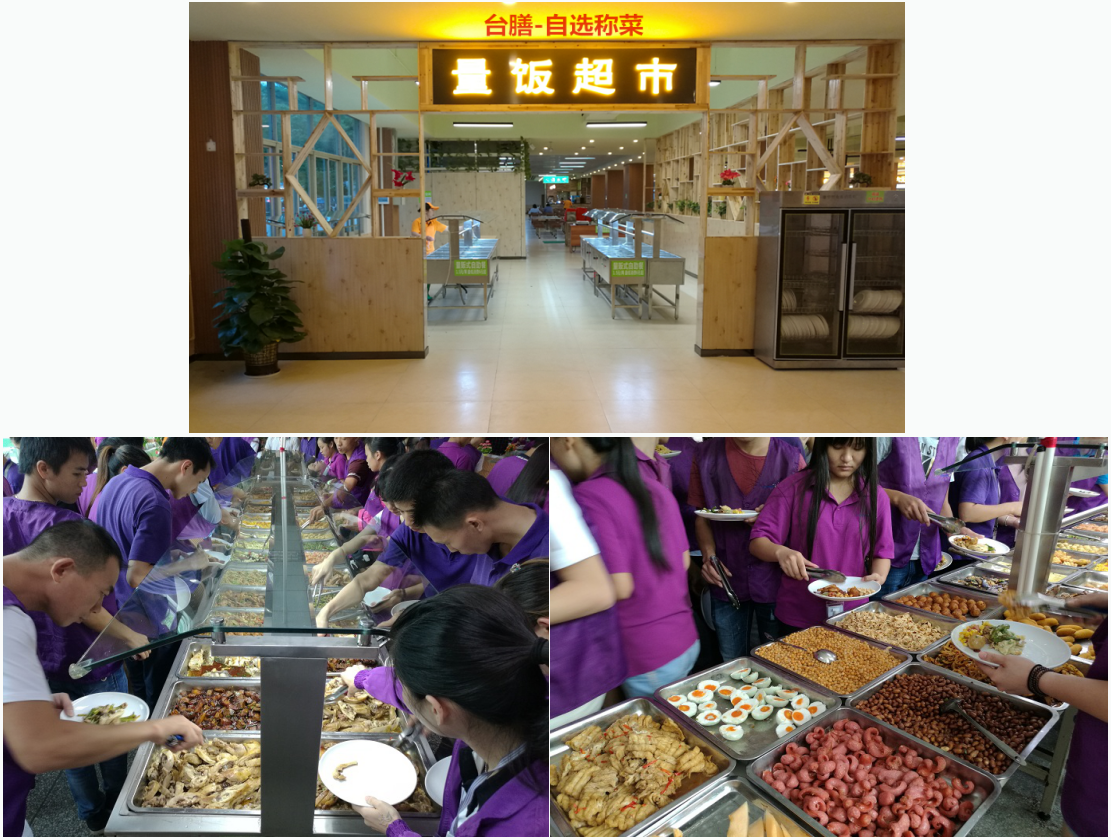 2、取餐速度快。在開餐之際,只要備足菜式品種,實時補充,用餐者自選食品后,到稱菜處稱重刷卡即可。不需要分餐員一個一個去分,速度明顯加快,而且人手也相應的降低。