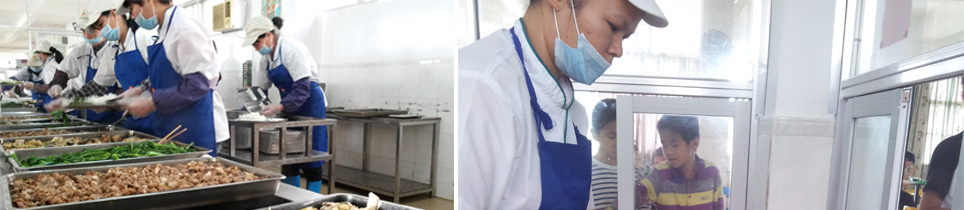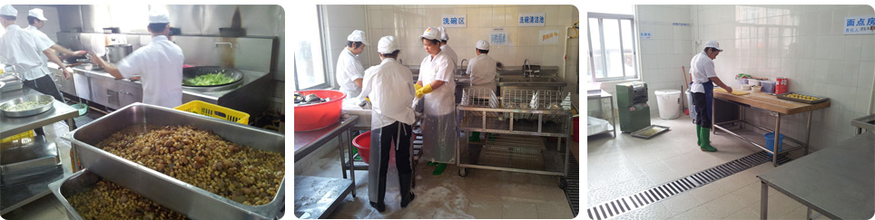 張貼廚房組織架構、健康證及質量體系。 新鮮菜類的加工,所有供應商均必須提供營業執照、食品流通許可證、健康證或是身份證,留存并適時更新。蔬菜類食堂需每日進行農藥殘留檢測,肉類需有檢疫證明等。 面點房所有,誠聘五星級酒店的面點師傅來做面點,是學生們最喜愛的食堂食品之一。 除了公司統一調配過來的食材,其他的副食調料必須由本地信譽度最高的供應商供應,本校副食以致美齋副食店為采購對象單位。 臺膳管理的每個食堂食用油指定為“所有中糧集團”出品的<福掌柜食用調和油>,嚴禁使用雜牌或散裝食用油。本校食堂選用本地羅定產的優質大米。 留存供應商必要的證件,以及副食調料等食品的檢測報告或合格證等相關證件。衛生安全及管理措施 48小時食品留樣 / 蔬菜農藥殘留檢測 / 肉類檢疫證 / 食堂臺賬(羅定飯堂管理,羅定食堂管理,羅定食堂承包,羅定飯堂承包,羅定飯堂托管,羅定食堂托管,羅定食堂承包商,羅定飯堂承包商,羅定職工餐廳承包,羅定員工餐廳承包)。食堂承包廚房部分展示