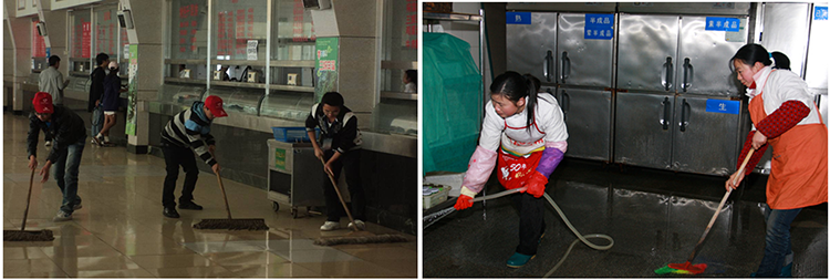 Each one will be stationed in the rapid formation of a commando before cleaning the cafeteria, the first thing that entered the cafeteria canteen clean-up, including the kitchen, dining, kitchen equipment, floors and chairs, ceiling walls, doors and windows ditches, dead corners, inside and outside the scope of the environment; with a large number of special cleaning tools, and specialized cleaning products to eradicate stubborn stains, clean with a new environment, new dishes, new service staff to meet corporate dining facility employees.